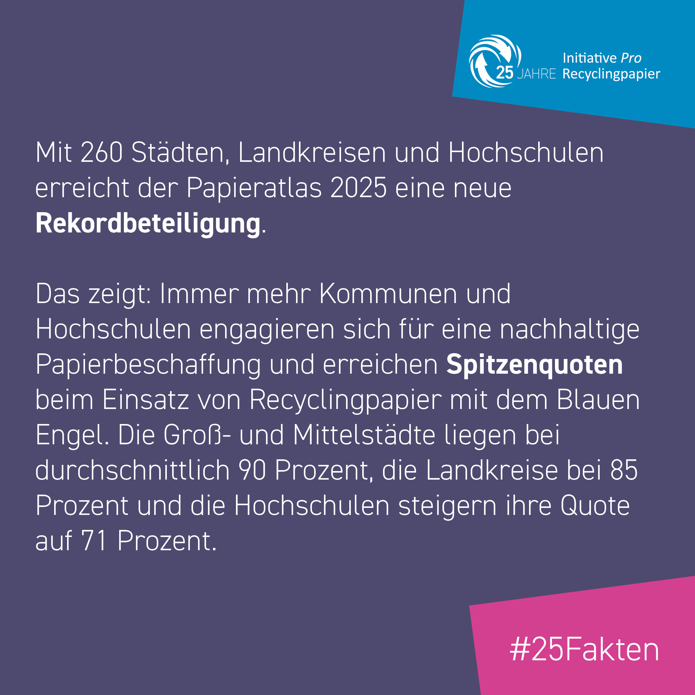 Ein Vierteljahrhundert Engagement für Recyclingpapier – das nehmen wir 2025 zum Anlass, um auf Meilensteine zurückzublicken und neue Impulse für die Zukunft zu setzen. Seien Sie gespannt auf neue Aktionen und Formate im Jubiläumsjahr!